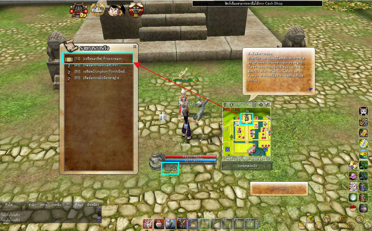 - กด Ctrl+Q เพื่อเปิดหน้าต่างภารกิจ