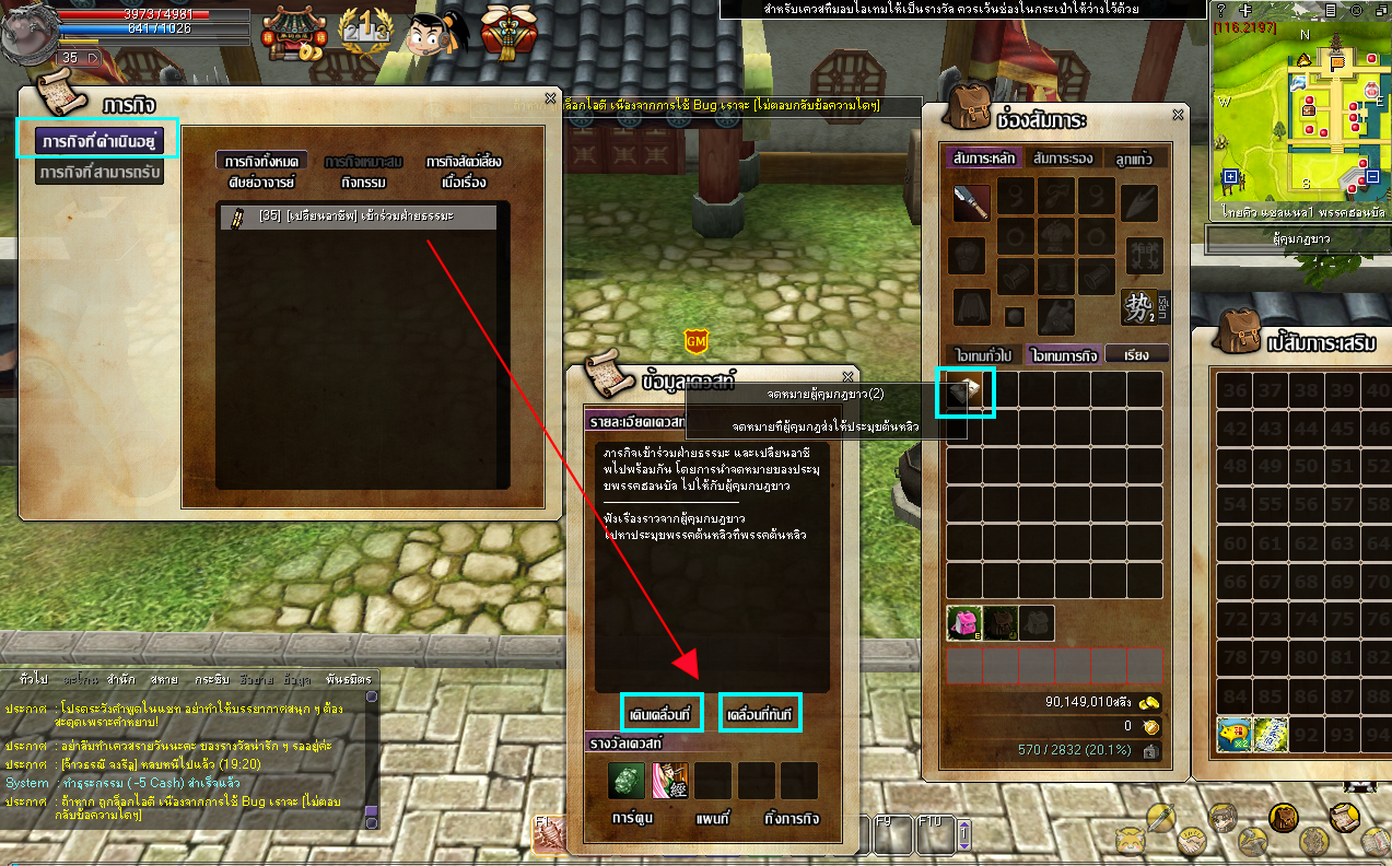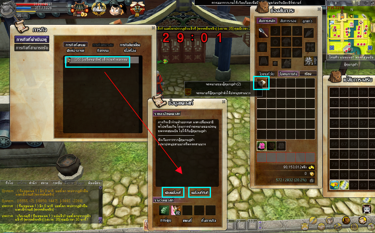 - กด Ctrl+Q เพื่อเปิดหน้าต่างภารกิจ