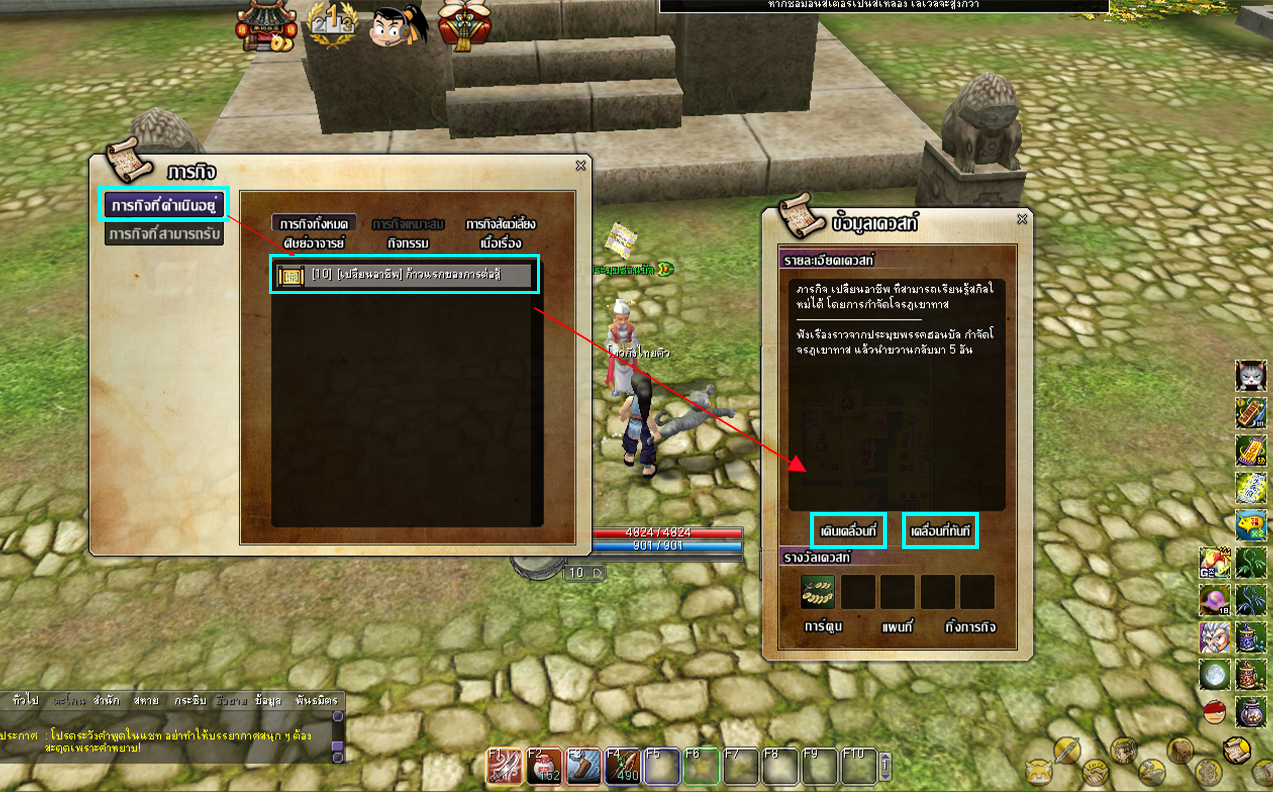 ใช้ระบบ Auto Move เพื่อเดินทางไปยัง NPC หรือมอนสเตอร์โดยอัตโนมัติ