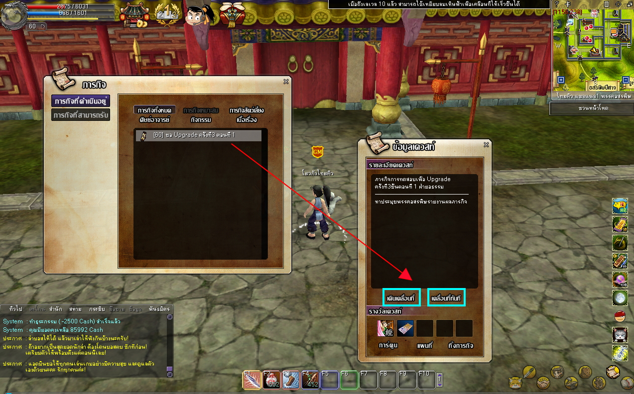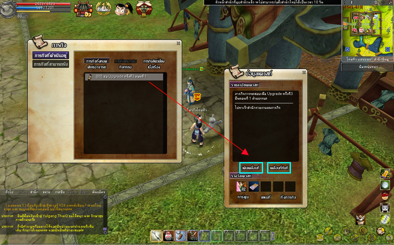 - กด Ctrl+Q เพื่อเปิดหน้าต่างภารกิจ