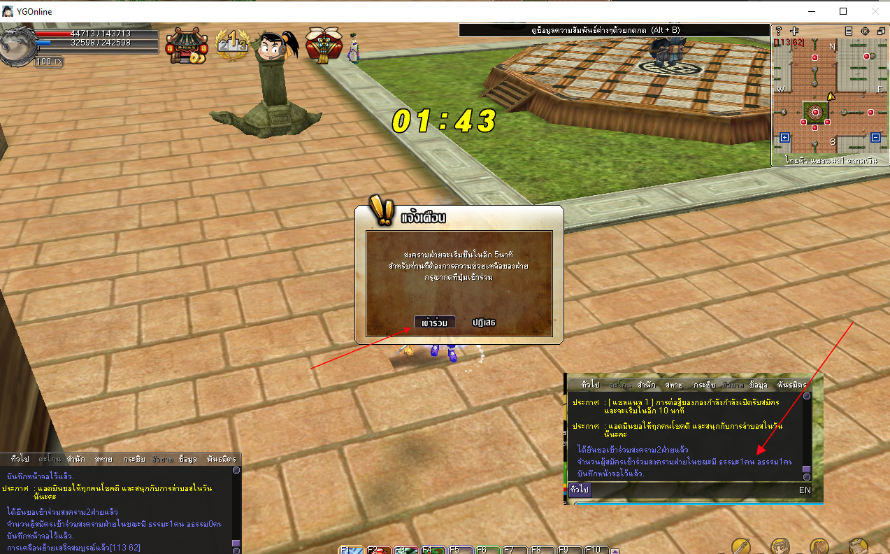 4. เมื่อหมดเวลาสมัคร ระบบจะพาท่านเข้าสู่สนามสงครามฝ่าย